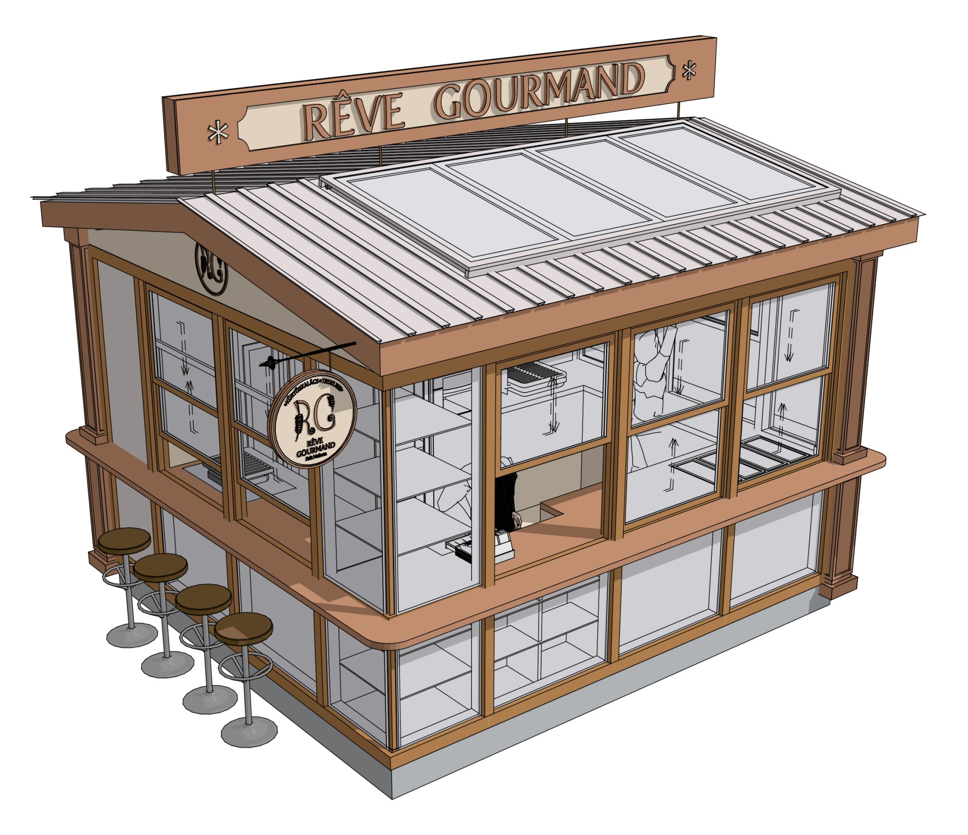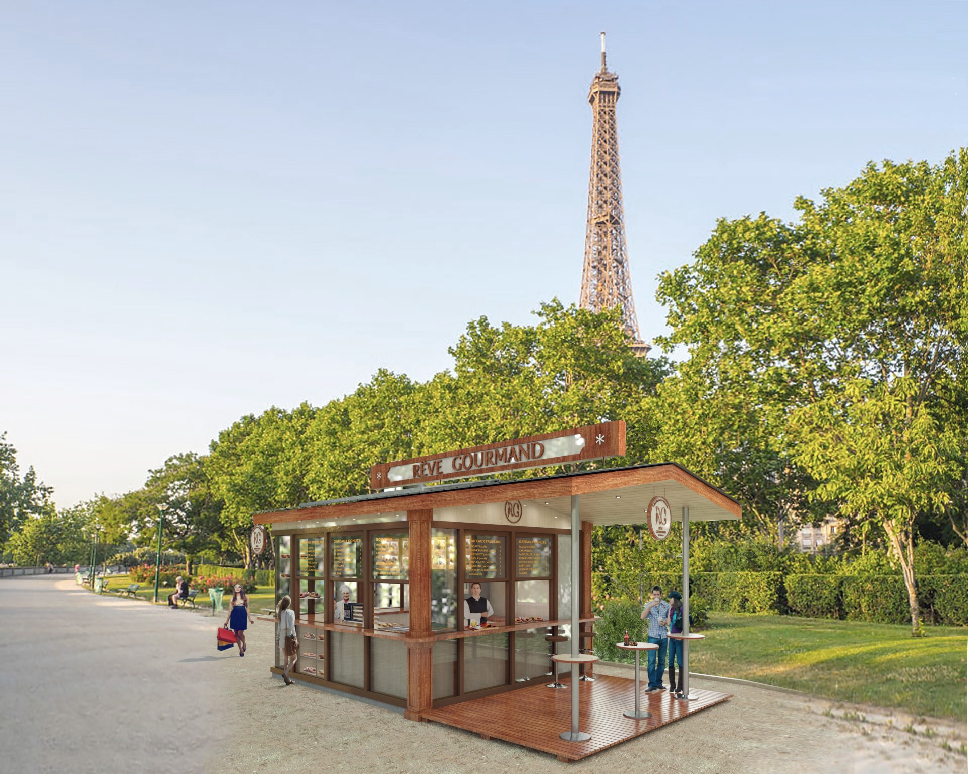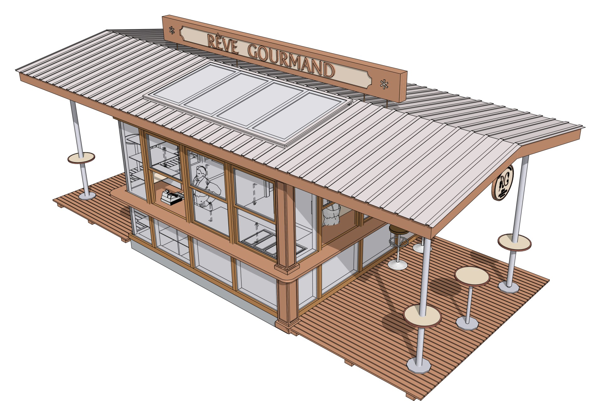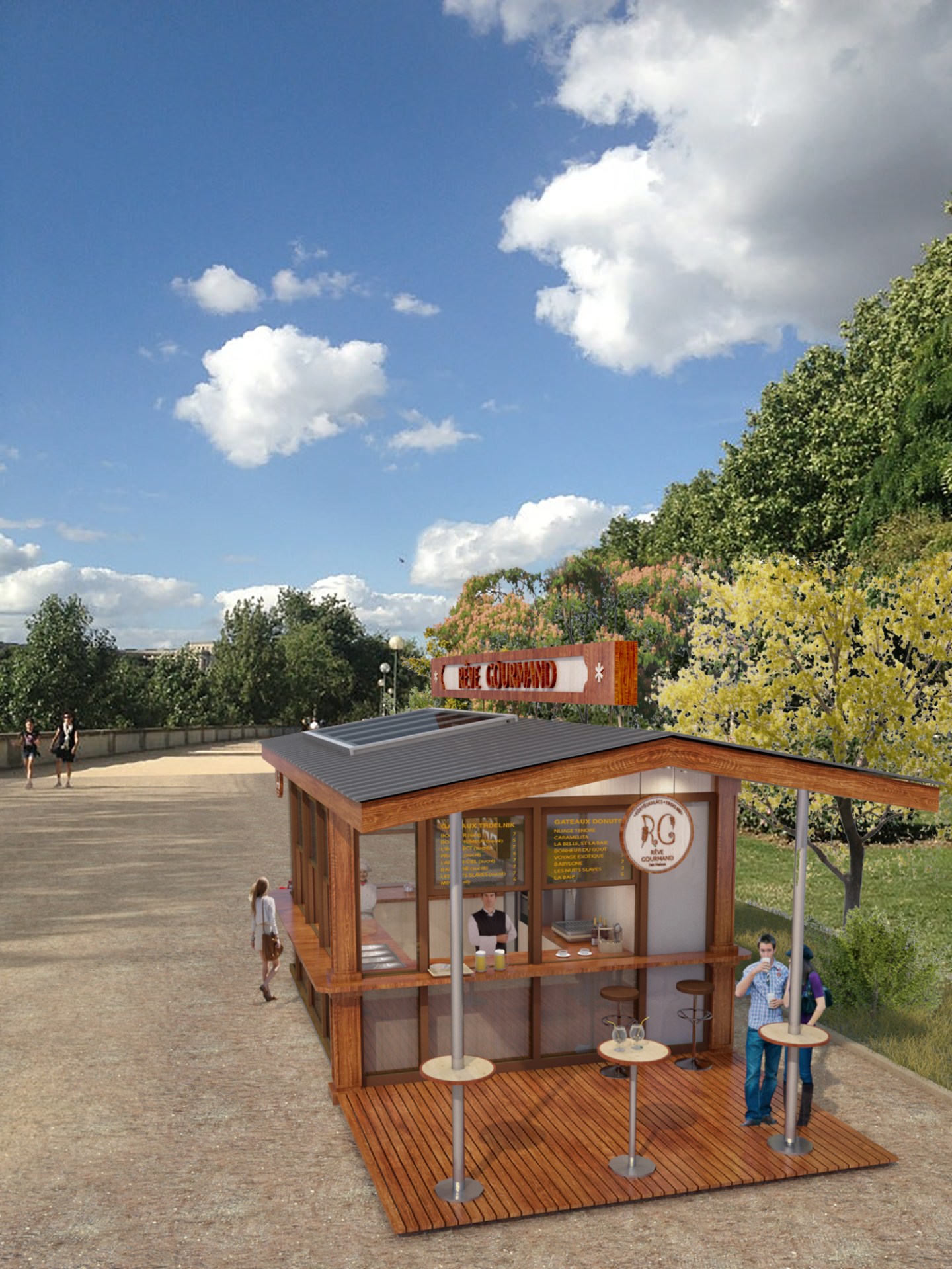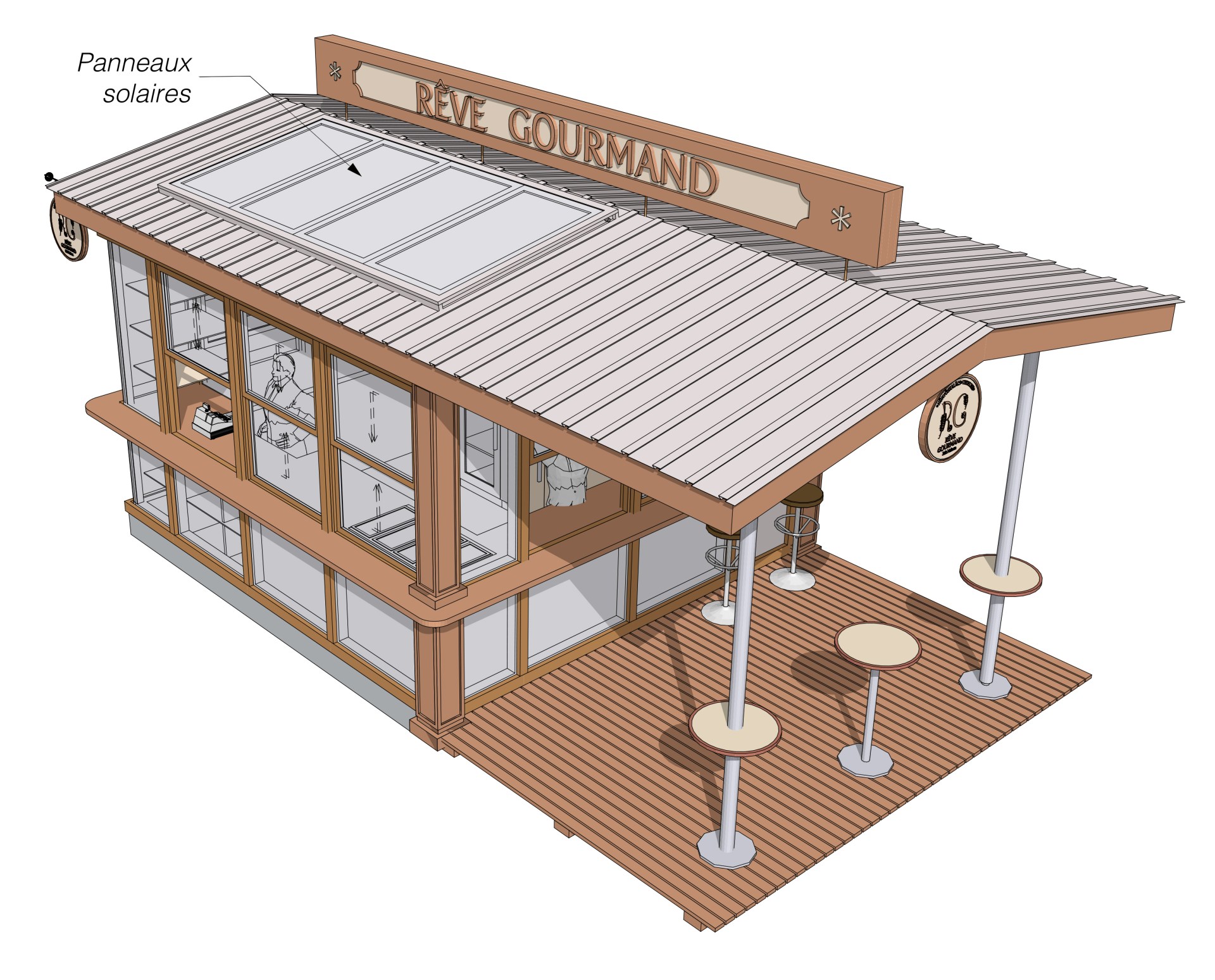 Ce projet de café offre en plus des options d’aménagement de l’espace public. Grâce aux panneaux solaires, l’éclairage LED est autonome et ces panneaux compensent une partie des dépenses énergétiques en rendant ce kiosque semi-autonome.