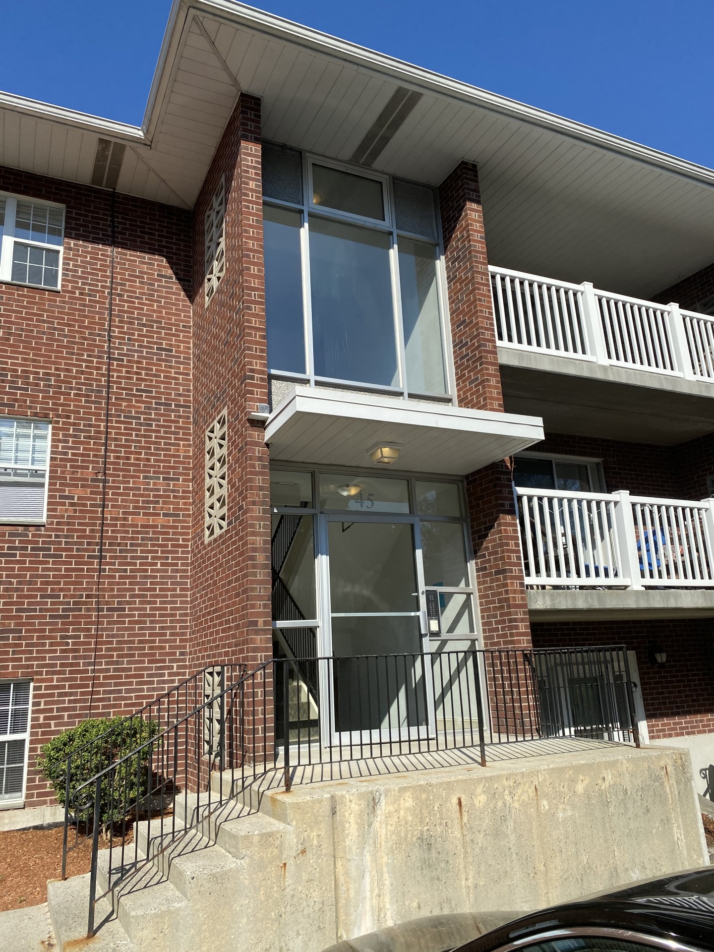 At first glance, it is obvious that the facade aesthetics is based on the contrast of red brickwork and white finish, which is represented by various elements: jointing of brickwork, white frames of windows and doors of balconies, white, quite remarkable, railings of balconies, roof lining and drainpipes. This contrast of red and white is very harmonious and its change will require financial costs for the correction of facades. Unfortunately, the dominant contrast of red and white is a little blurry, as there are other dissimilar elements – the silvery aluminum frame of the entrance group and at the same time the black metal railing of the porch; beige concrete entrance porches, which today have a not very attractive appearance; concrete elements for decorative lattices and balconies. The beige color goes well with red brick, but it is a bit too much and this levels out the contrast of white and red, besides, the concrete porch needs updating.